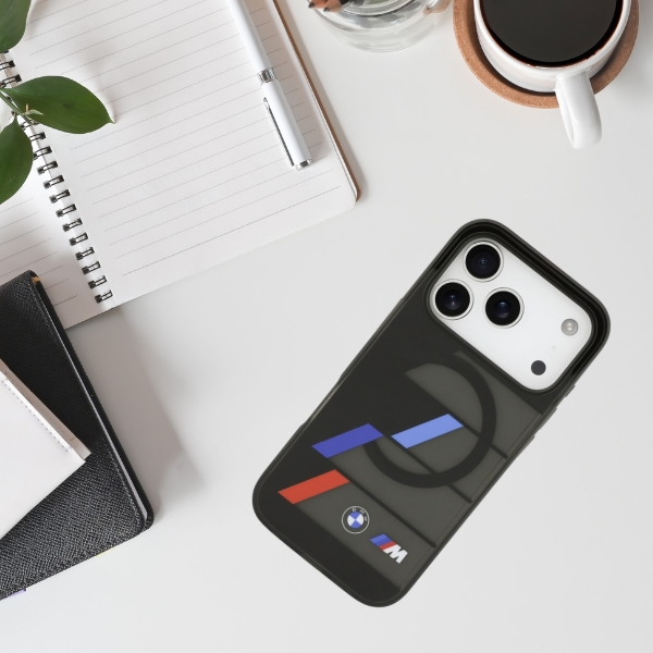 Etui BMW M IML Metal Buttons Tricolor Lines MagSafe to połączenie sportowego stylu i nowoczesnego minimalizmu inspirowanego linią BMW M.