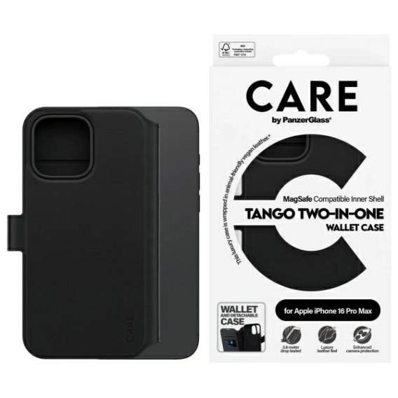 Etui CARE by PanzerGlass Feature Tango 2in1 Wallet MagSafe na iPhone 16 Pro Max - czarne