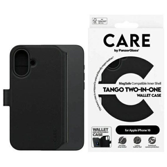 Etui CARE by PanzerGlass Feature Tango 2in1 Wallet MagSafe na iPhone 16 - czarne
