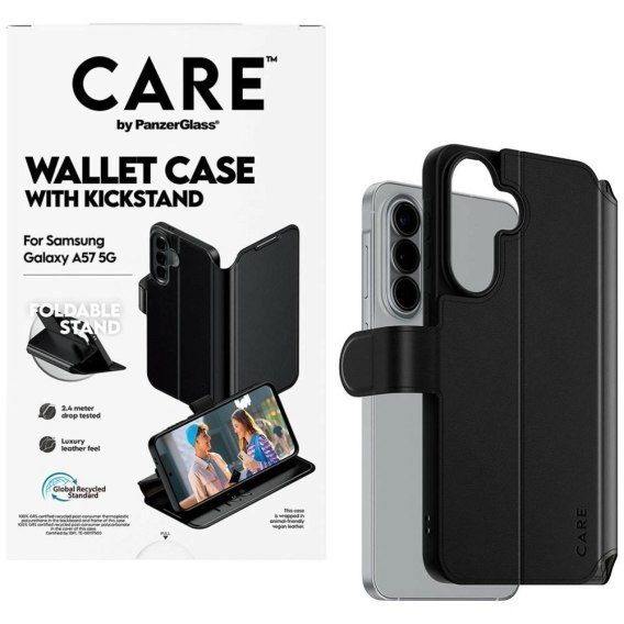 Etui CARE by PanzerGlass Feature Wallet Kickstand na Samsung Galaxy A57 - czarne