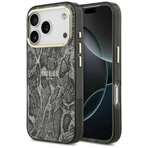 Etui Guess Python Pattern MagSafe na iPhone 17 Pro -czarne