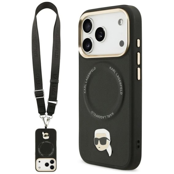 Etui Karl Lagerfeld Big Strap Karl Metal Logo MagSafe na iPhone 17 Pro - czarne