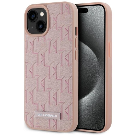 Etui Karl Lagerfeld Leather Monogram Metal Logo MagSafe na iPhone 15 - różowe
