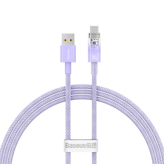 Kabel Baseus Explorer 100W USB-A - USB-C z inteligentnym czujnikiem temperatury 1m - fioletowy