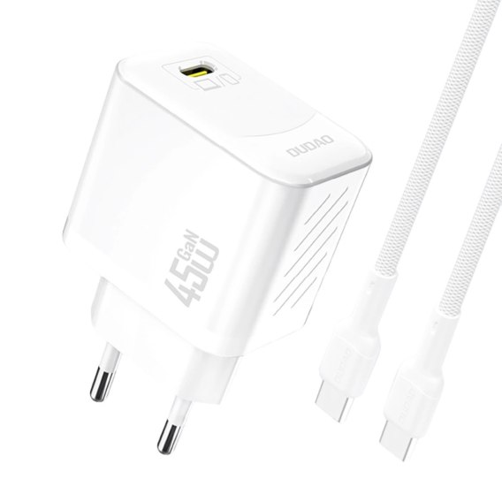 Dudao A28C to nowoczesna ładowarka sieciowa z technologią GaN, która łączy wysoką moc do 45 W z kompaktową i lekką konstrukcją. Obsługuje szeroki zakres napięć od 5 V do 20 V, co zapewnia szybkie i bezpieczne ładowanie wielu typów urządzeń mobilnych i laptopów. W zestawie znajduje się kabel USB-C, który dodatkowo zwiększa wygodę użytkowania. Minimalistyczny design w białym kolorze sprawia, że ładowarka pasuje do każdego otoczenia - od domu, przez biuro, aż po podróż.