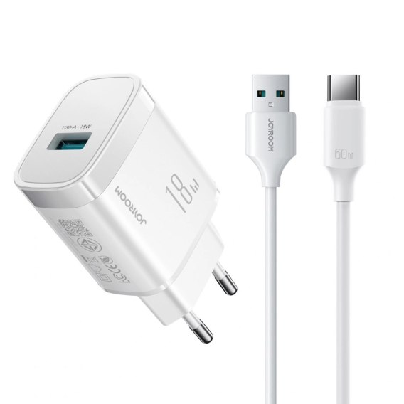 Ładowarka sieciowa Joyroom JR-TF4 18W USB-A z kablem USB-A - USB-C 1 m - biała