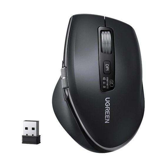 Myszka Ugreen bezprzewodowa optyczna - czarna łączy wielotrybową łączność 2.4G i Bluetooth 5.4, zapewniając swobodę pracy na kilku urządzeniach jednocześnie. Szeroki zakres DPI od 1000 do 5000 umożliwia precyzyjne dopasowanie czułości do zadań biurowych i analitycznych, a szybkie przewijanie ułatwia pracę z dużą ilością danych. Dodatkowe boczne pokrętło pozwala na wygodne przewijanie w poziomie, zwiększając efektywność użytkowania. Ciche przyciski i trwała konstrukcja poprawiają komfort pracy. To funkcjonalna mysz stworzona z myślą o codziennym wykorzystaniu w wielu środowiskach systemowych.